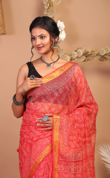 Explore a curated showcase of our most cherished sarees and fabrics, each a testament to India's handloom artistry. From the luxurious charm of Bhagalpuri silk sarees to the vibrant beauty of block-printed creations, every piece is designed to blend timeless tradition with modern elegance — elevating your wardrobe with sophistication and cultural depth.