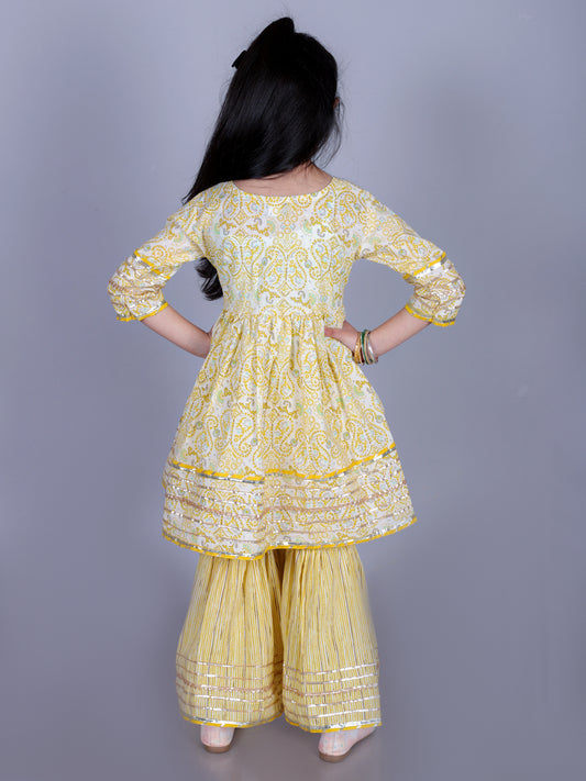 Anuttara Yellow Cotton Blend Anarkali/Flared Kurta & Sharara Set_FJG1011