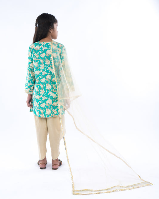 Anuttara Turquoise Pure Cotton Straight Kurta Dhoti Pant & Dupatta Set_FJG1062