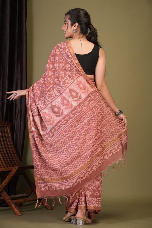Anuttara Bhagalpuri Rouge Pink Cotton Silk Dabu Print (Hand Block) Saree with Unstitched Blouse_AFS1410-FS