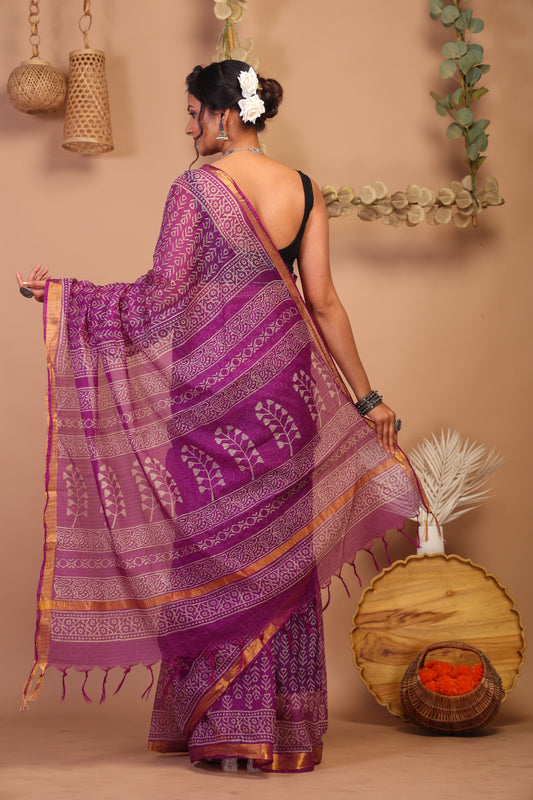 If you love patterns that tell a story, our hand block print sarees are handcrafted for you. We specialize in traditional printing techniques like Ajrakh hand block print saree, known for their earthy charm and geometric finesse. Whether you're drawn to the intricate artistry or the eco-friendly dyes, these sarees make a statement that lasts generations.
